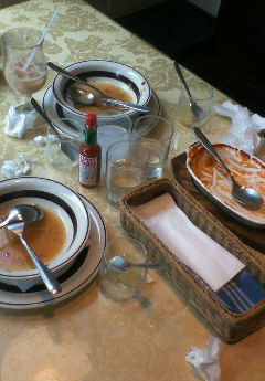 友達の親が働いてるお店で、お昼ごはんおごって貰っちゃいました♪ 食べる前の画像撮り忘れて食べ終わった後…;; うちはドリアを☆★友達はパスタを… コップの水が一つ濁ってるのわかるかな…。 普通の水が突然変異しました。((ぇ …嘘です; ワタシが、紅茶のミルクを友達のコップにいれました。((死 とりあえず、スッゴイおいしかった★☆ |