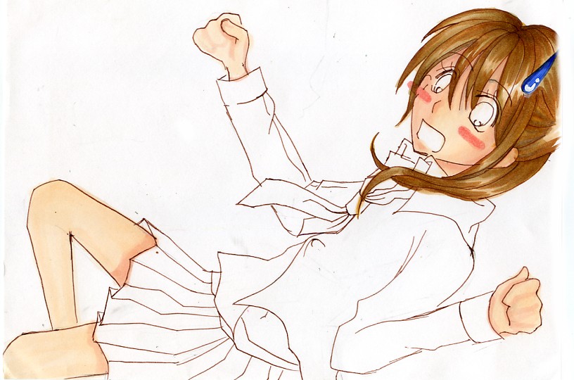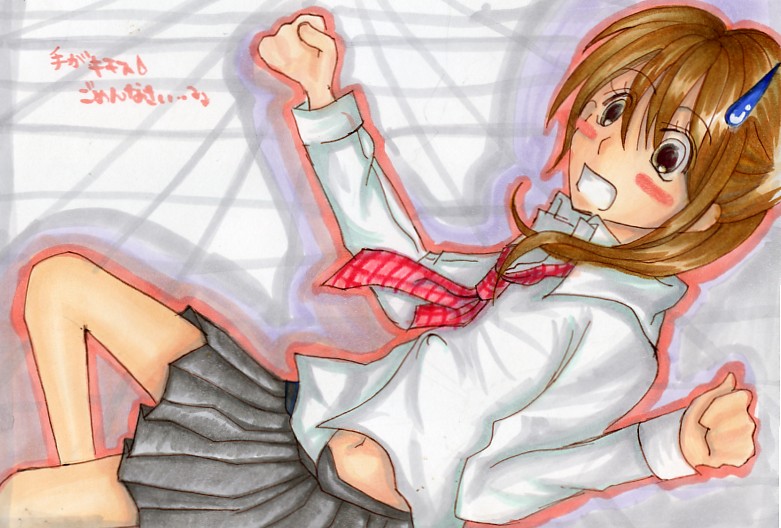 家族が今居ないので、スキャナ使い放題★ なので… へたっぴイラスト下書きから~完成までを… 下書き★☆ 手描くのめんどくさい… アンモニア臭のするドローイングインクのペンの 茶色で直にペン入れww やっぱり、つんとした香りが… でもなぜか自ら臭いかいでしまうのはなぜなんでしょう…? 肌色をががーと塗っちゃいマス! アニメ色にしたかったのに… 全然違うじゃん…;; 暗い色を先においてから、 順に明るい色を塗っていきます… むつみは人にあげるやつも、めちゃはみだして塗ってマス☆★ だから、出来上がったときめっちゃ汚い… あ。腹塗るの忘れてた… スカート一番力こめて塗りました!! いま、コッピクの0の色を切らしてて((お金ないから買えない;; ぼかすにもぼかせない!! 塗りにくったらねぇ…もう色まちがえんだから… そして、目ン玉に色付けして… 微妙に影をつけたりします。 後は、パソで画像を取り込んだりして… 完成です★☆ これは、日記用に画像くっつけてみました(^^) へなちょこなむつみのイラストも、 他の画像とくっつけると解りにくく!!!((ぇ お世話になった((? 画材さんたち。 実際にあげるイラ☆★ |