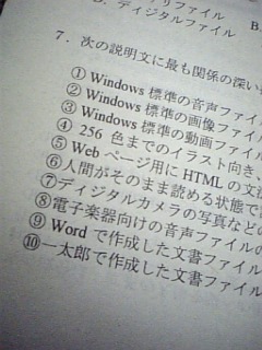 4000hit記念にコピックで色塗ってみました ![]() 一応フリーイラストなので、よければドウゾ ![]() パソコンにとりこんだら色がだいぶ違う色に… 服の色が髪と同じ色に… 今日にてテスト終了だんず…!! 今日は家庭科と情報… まぁ。家庭科は捨てるとしても…((ぉい。 情報は捨てられねぇ…!!! ((↑でもほぼ勉強してない。 一応パソコンのことばっかだから わかったけども… 「一太郎のファイル形式をかきなさい」 は??? 「Windows標準の動画ファイル形式をかきなさい」 「windows標準の音声ファイル形式をかきなさい」 「電子楽器向けの音声ファイルの規格…… はぁ!!!!??? 知るわけないじゃん!!!! ((↑勉強しないのが悪い。 てゆうかそんなのいちいち覚えてるわけないじゃん!!! あ~~…ヤバイわ… 絶対点数やばいさー… |
