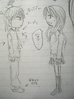 今日も友達とサイゼでだらりー… ふと、話は5年前から2人でやっていた 交換漫画(リレー漫画)の話に… そんな2人がサイゼで描いた絵。 ↑↓ そんな感じで、 交換漫画再開ッッ すると思う…多分…もうすぐ冬休みだけど… 描いたらアップしてやるんぜ。 ((↑何様。 コーヒー2人で×3杯~ 砂糖使いすぎ~… で、 砂糖の袋で 作ってみた ![]() バカじゃん~とかアホじゃん~とか まったく聞こえない~。 ちなみに、 「おみく痔」ってかいてあります☆ 友達の名前とかけてみた…の。 |