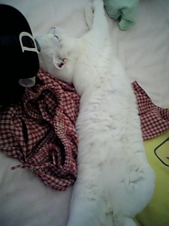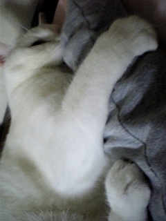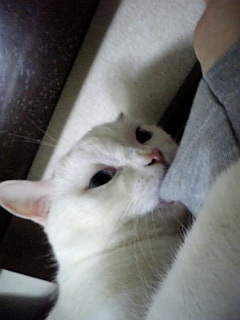 うちの猫あご、ちゃばんでる… 人の腕でにぱにぱするようになったわ… もう、季節は冬ね… なんて、思いながら必死で写メ撮っている うちの姿は誰も見ないで下さい…。 スウェットに噛み付きながら、 にぱにぱ… あの… 一体何分やってれば気が済むのでしょうか??? かれこれ、10分近くがたとうとしているのですが… わたくし、少しばかりゲームがしたいのですが…。 ぎゅむ。 ぎゃぁぁぁっぁぁぁぁ!!!! 爪!!!!爪が腕にくいこんど る!!!! てか、おちりクサイ!!!!! …結局何分やってたんだか… 腕が痺れて、気がついたときには朝でした。 …クソッ コンタクトつけたまま寝てしまった…ッ |