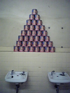 さて、なんでしょう。 ヒントは毎日お世話になっている物です。 今日は学校のトイレ掃除~。 帰ろうとしたら先生にマジギレされたので、 しぶしぶ、参加しましたデス。 ちなみに答えは、 うちの学校限定のトイレットペーパーだんず。 包み紙に、高校名とふしんな 金太郎みたいな絵がかいてあります。 てか、金太郎って… 胸かけのした… まッぱだよね… 元祖変質者…。 頑張って組み立ててみました。 てか、むつみが高校はいって初めての掃除の時に やりはじめたら、 トイレ掃除担当の先生がそれ以来 トイレットペーパーこうゆう風に並べてくれるように なりました。 無駄な労働力つかいましたが、 満足だわ… ちなみに高さ的は、151㌢のむつみの身長だと てっぺんのペ-パーを置くのが厳しい。 かなり、くだらない… 本人かなり必死。 |