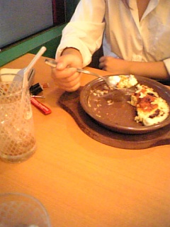 とゆうわけで、 愛するサイゼに行ってきました★☆ 学校の近くのサイゼは うちの学校の生徒立ち入り禁止になってたので、 しょうがないから、隣の駅のサイゼヘ… 混んでて、何分か待たされるし… 制限時間つきだし… でも、もっさり喰う 友達撮ったら殴られた… ペペロンチーノにドリア落とした… こっちの友人Mは撮ってたら 頭にのりだした^^ とりあえず、いつも食べてる物だから おいしかった☆★ 299エン愛してるっ>< |